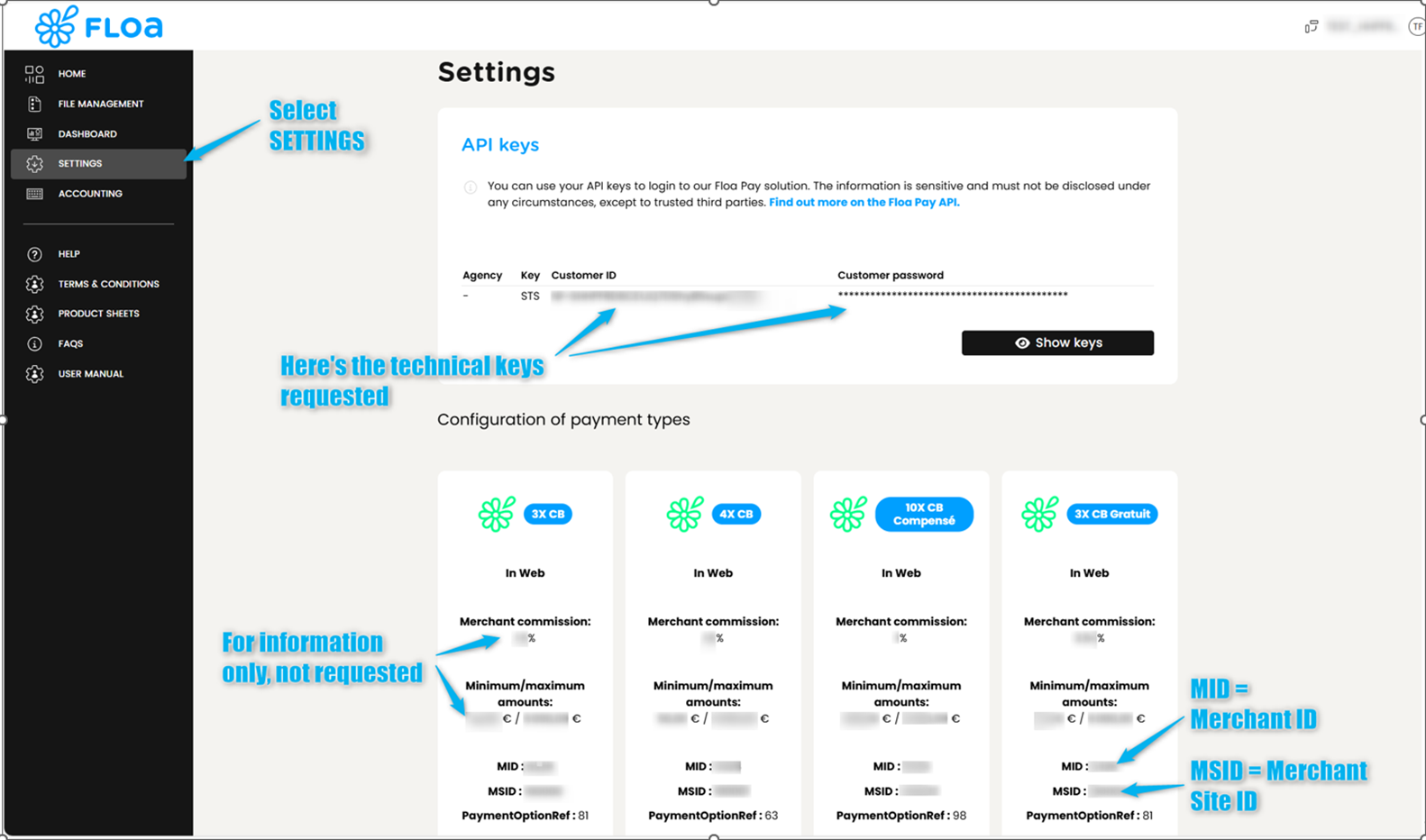 - All the required information, including the Merchant Site ID, is available on your FLOA portal.