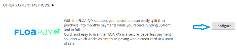 Finally, select Configure on the FLOA Pay payment method.