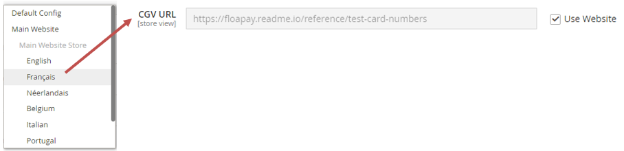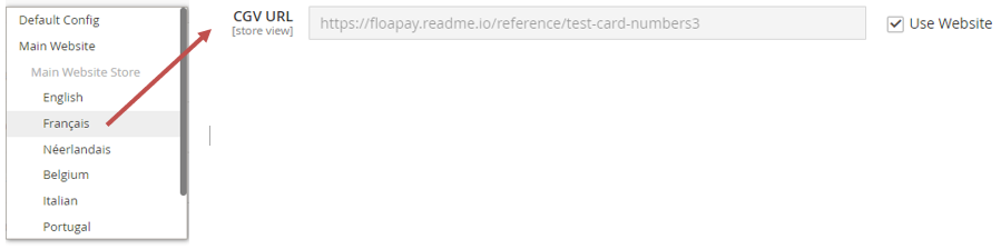 The “Use website” is checked on this store configuration for the field “CGV URL”.