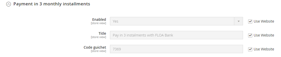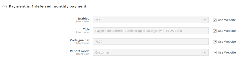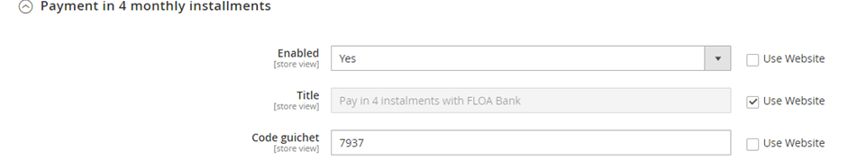 Configuration of your payment method depending on the FLOA options you have subscribed to, you can configure up to 4 payment methods: