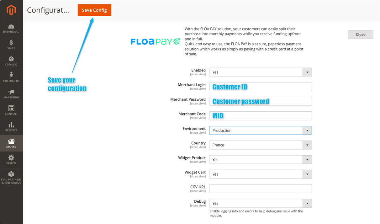 This account will allow you to onboard yourself. You will receive an email with all login information to set-up FLOA payment method on your Magento store.
