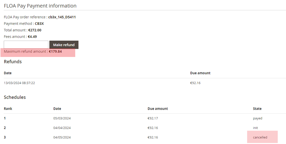 Simply enter the amount to be refunded and click on the button Make refund.