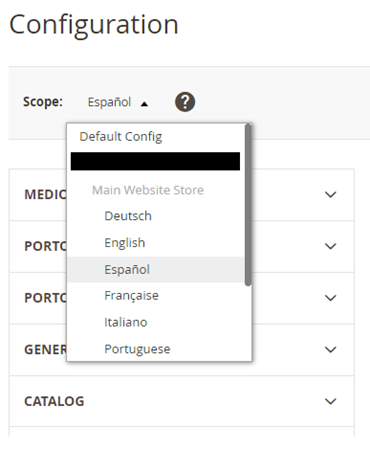 If you make a configuration on the main website, it will be reflected on all scopes.